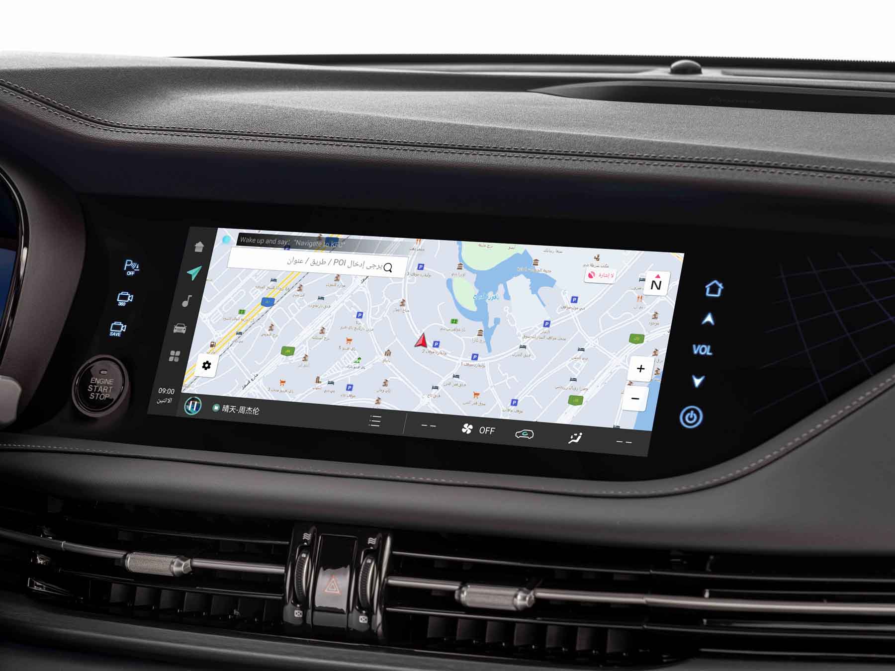 A high-resolution display integrated into the dashboard, providing navigation, media controls, and smart connectivity for an enhanced driving experience.